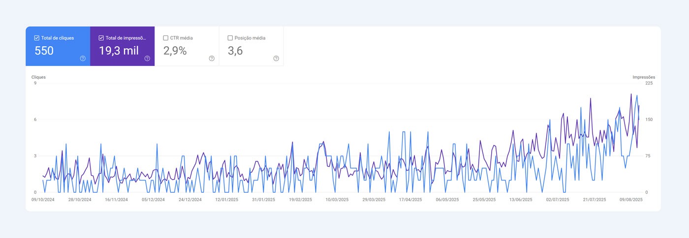 Gráfico de Desempenho nas pesquisas Google